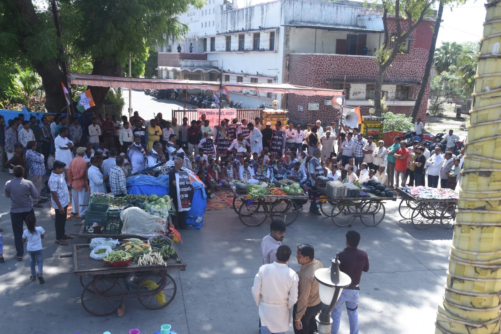 इस अवसर पर कांग्रेस नेता पारस सकलेचा , रामचंद्र धाकड, किसान नेता राजेश पुरोहित, पार्षद कमरुद्दीन कछवाय, नासिक कुरैशी, इक्का बेलूत, राकेश झालानी, महिला कांग्रेस अध्यक्ष कुसुम चाहर, पार्षद मनीष व्यास, कविता महावर, मीनाक्षी सेन, वसीम अली, नीलोफर खान, भावना पेमाल, एनएसयूआई अध्यक्ष नितेश शर्मा, गणेश यादव, रशीद अंसारी, साकिर खान, सुनील महावर, विजय पंड्या लाला, कैलाश सोलंकी गुड्डा, श्यामसुंदर शर्मा, इकरार चौधरी, राजकुमार जैन लाला, जायदा बेन, राधा प्रजापत, हरविंदर सिंह, कमल पांचाल, आरिफा कछवाय, जितेंद्र पंडित, सहित कई कार्यकर्ता तथा सैकड़ो की संख्या में जनता उपस्थित रही । 10 से अधिक सब्जी, फल, रेडीमेड कपड़े, जूते चप्पल तथा कटलरी सामान की ठेला गाड़ी तथा आठ से अधिक महिलाएं सब्जी की टोकरी और पोटली लेकर सभा स्थल पर अपनी दुकान लगा कर बैठी थी ।